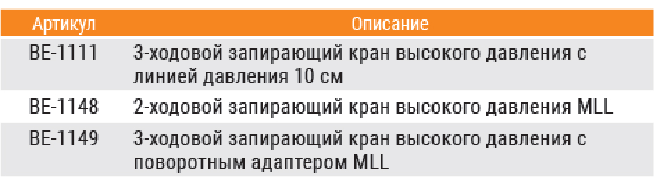 Предназначены для инфузии, диагностики и контроля состояния пациента во время хирургических вмешательств. Запирающие краны могут поставляться в комплекте одноразового стерильного набора расходных материалов либо отдельно.